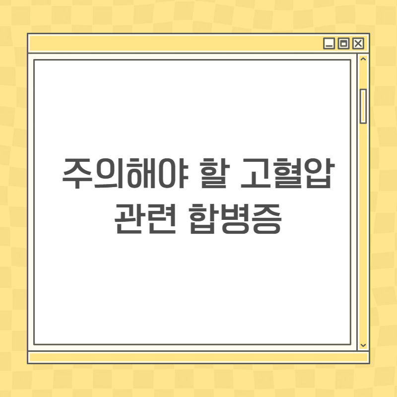 고혈압이 지속되면 다양한 합병증을 유발할 수 있습니다. 주요 합병증은 다음과 같습니다.